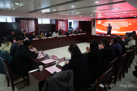 交易中心与武汉市储备粮保障中心相继介绍了发展历程与党建工作开展情况,在促进党建与业务工作融合的环节,交易中心交易部代书阳同志向各位党员解读了2024年修订印发的《湖北省地方储备粮竞价销售交易规则》和介绍了交易监管系统,信息部王薇雅同志对2024年、2025年的全省地方储备粮形势进行了分析盘点。